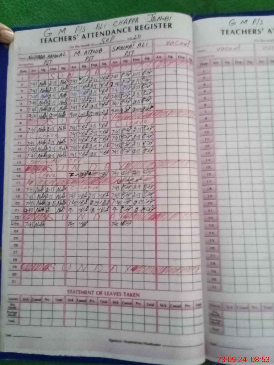 | Name: NO**** KA**** Designation: (School Headmaster's/Headmistress's) PST Phone/Cell Number: 03**** |