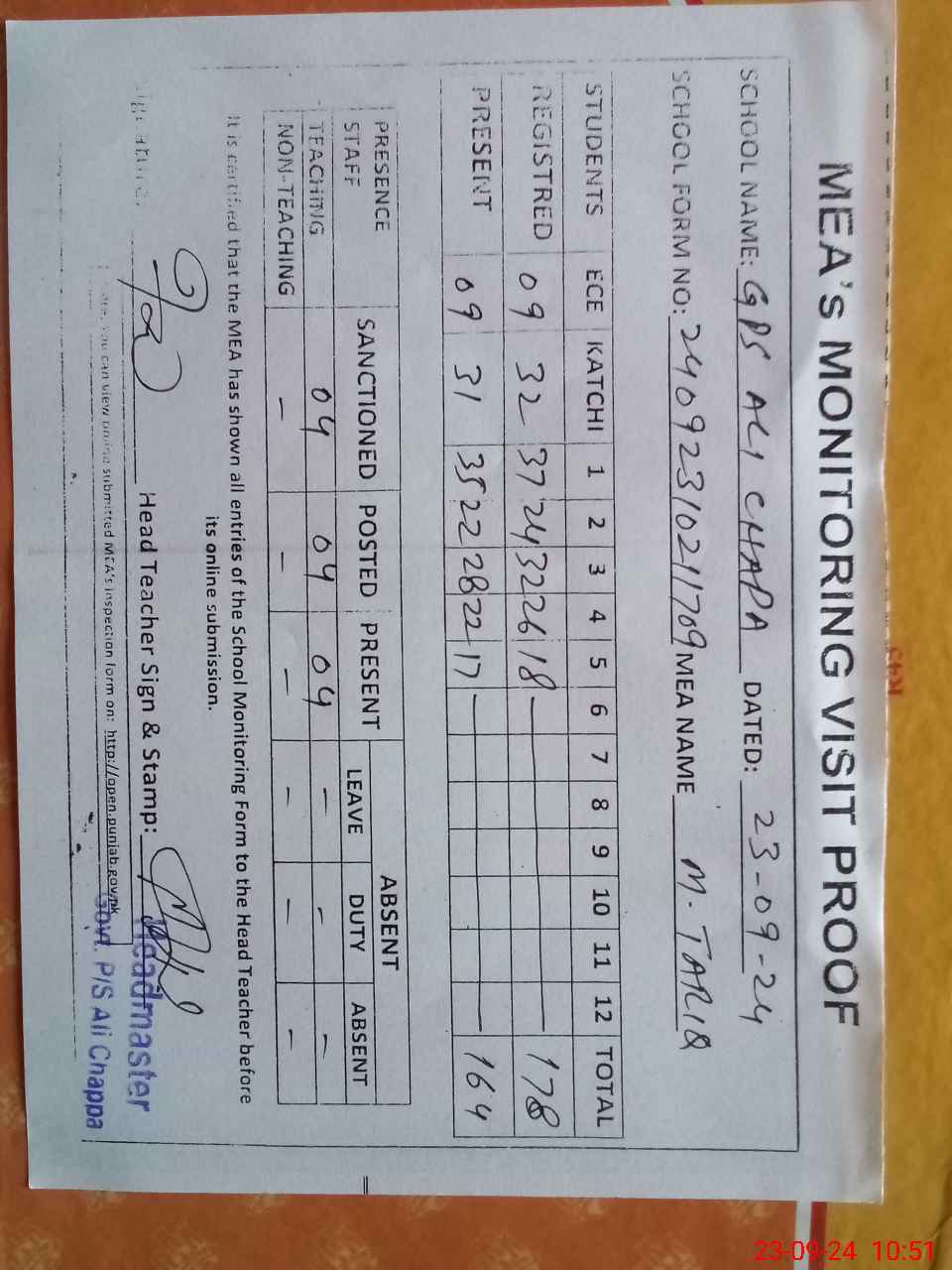 | EMIS Code: 36410261 | Name of School: GPS ALI CHAPPA, P/O 9-B/8-R, ABDUL HAKIM | |||