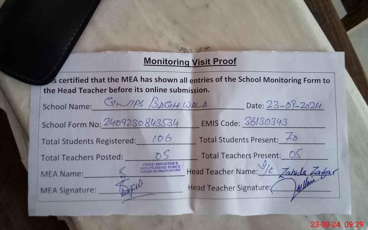 | EMIS Code: 36130343 | Name of School: GMPS BAGH WALA NEAR B Z UNIVERSITY | |||
