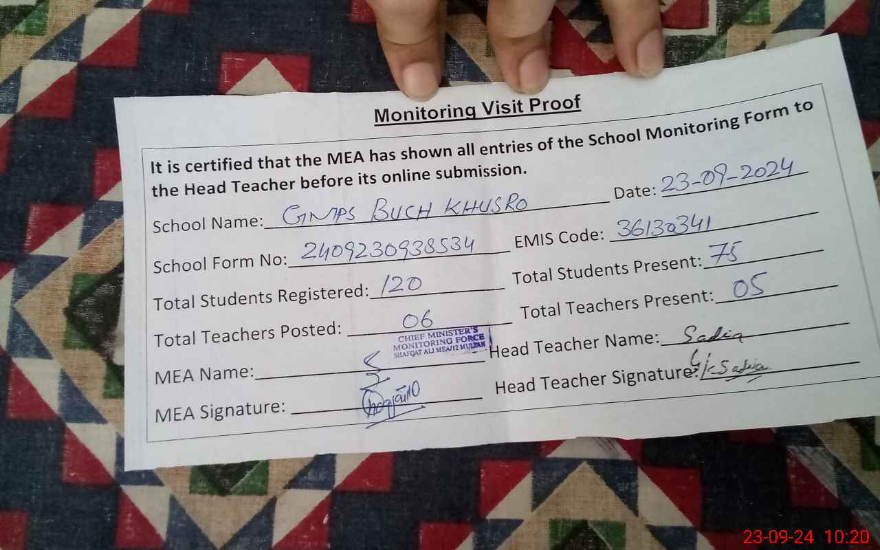 | EMIS Code: 36130341 | Name of School: GMPS BUCH KHUSRO ABAD BOSAN ROAD MULTAN | |||