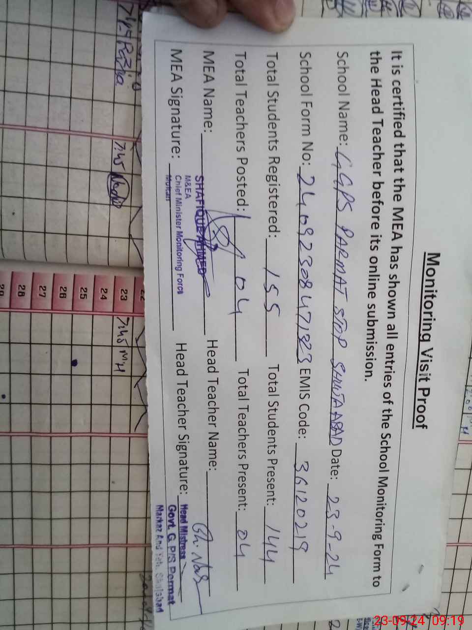 | EMIS Code: 36120219 | Name of School: GGPS PARMAT STOP MUZA HALALWAJA | |||