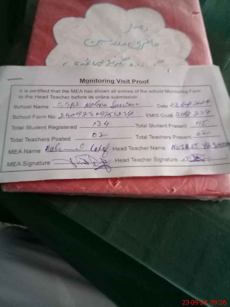 | EMIS Code: 31150274 | Name of School: GGPS NOHRA MUHAMMAD SARWAR | |||