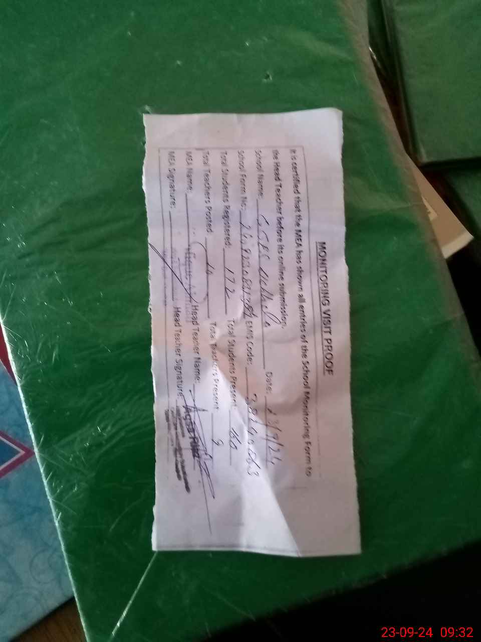 | Attendance Register | Head Teacher | MEA with School | Visit Proof |
