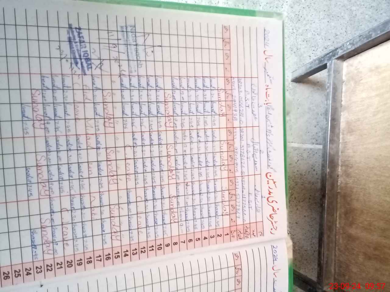| CNIC | Full Name | Designation | R/C | Absence During Last Calender Month |
