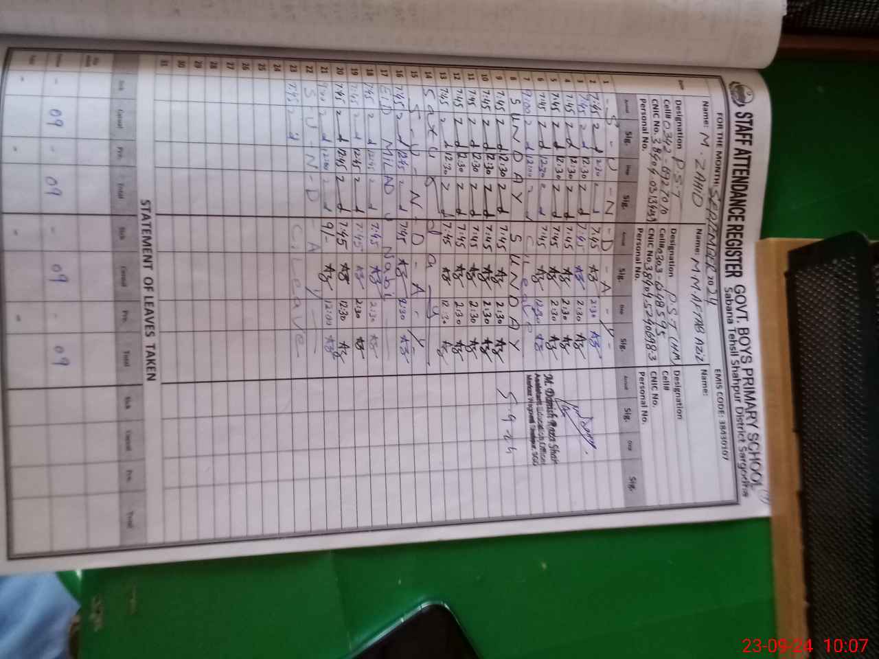 | Name: Af**** Az**** Designation: (School Headmaster's/Headmistress's) PST Phone/Cell Number: 03**** |