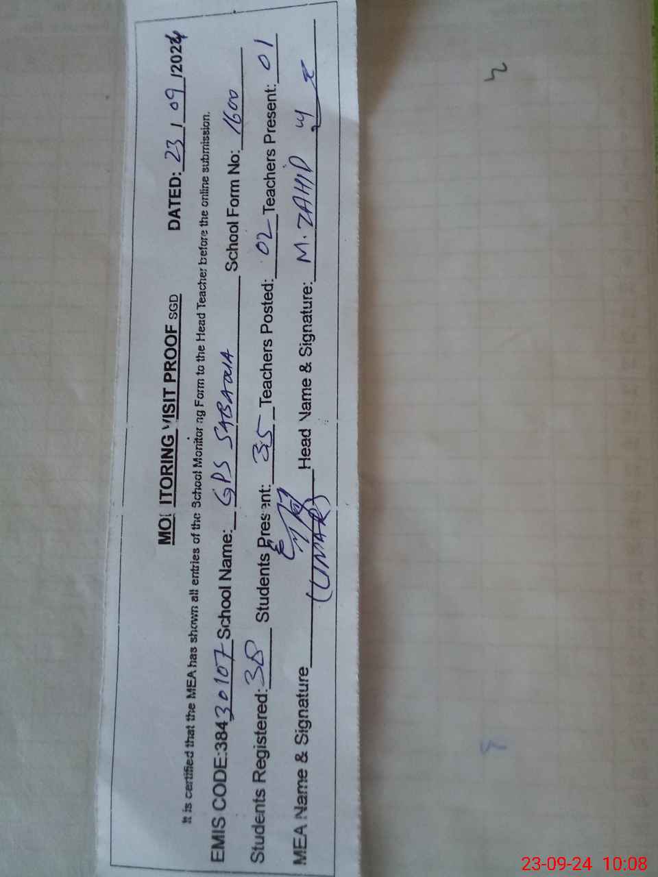 | EMIS Code: 38430107 | Name of School: GPS SABANA | |||
