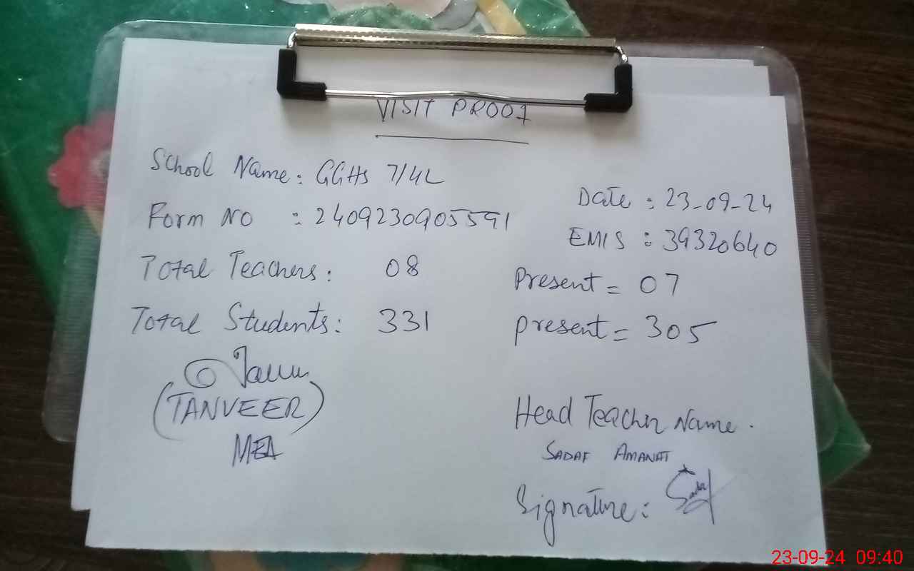 | EMIS Code: 39320640 | Name of School: GGHS CHAK NO. 7/4-L | |||