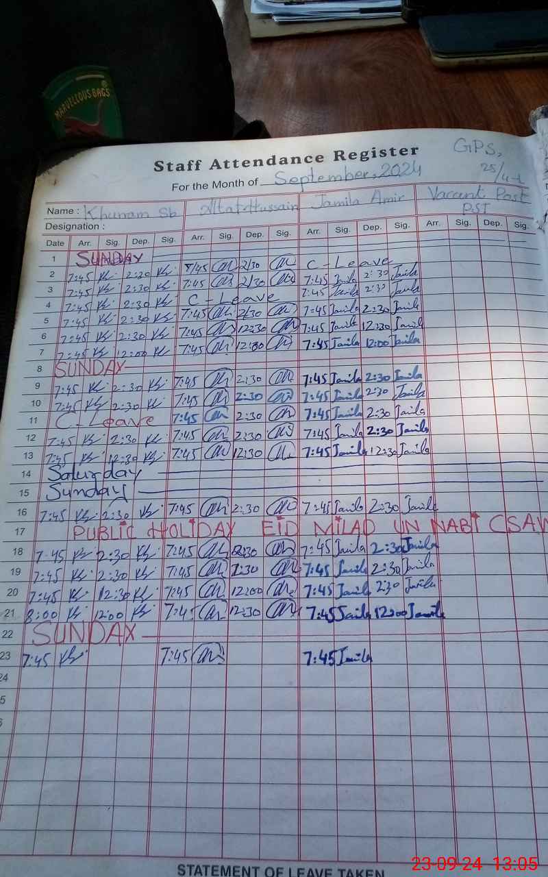 | Name: KH**** SH**** Designation: (School Headmaster's/Headmistress's) PST Phone/Cell Number: 03**** |