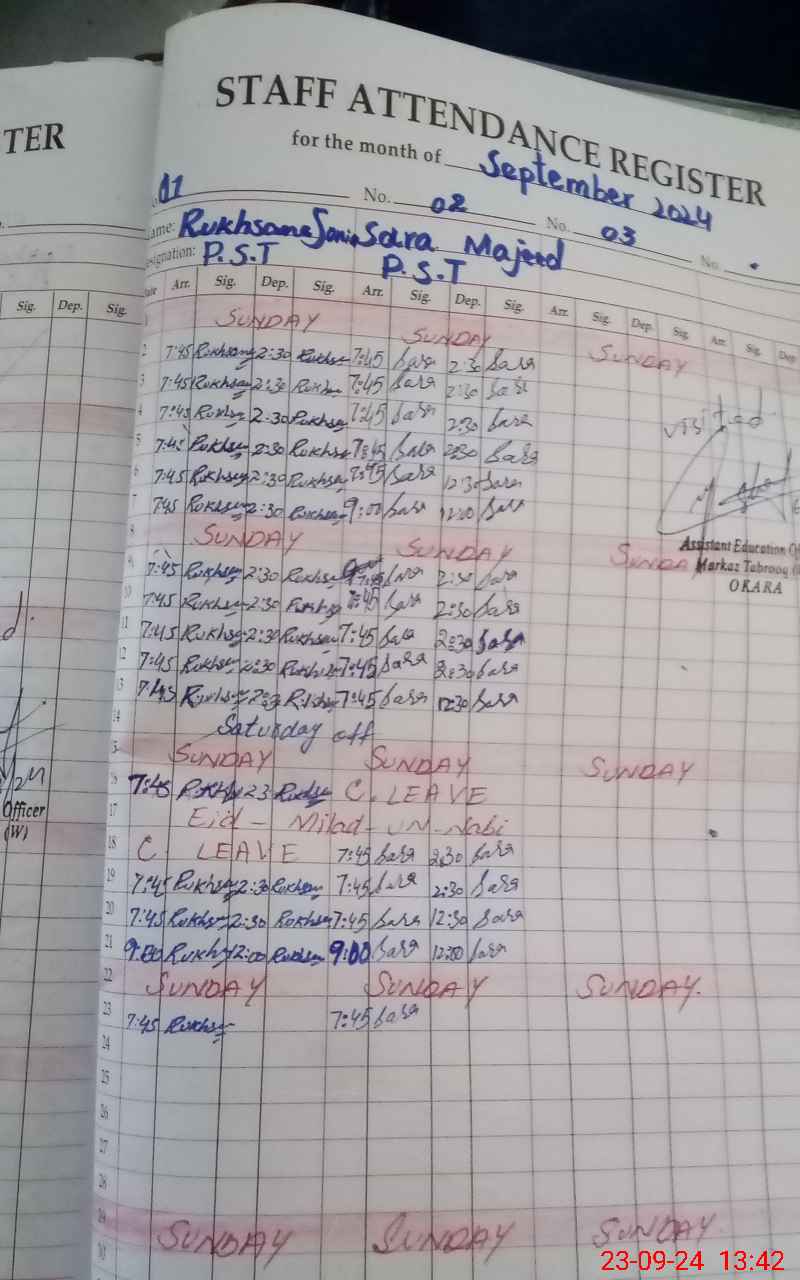 | Name: Ru**** So**** Designation: (School Headmaster's/Headmistress's) PST Phone/Cell Number: 03**** |