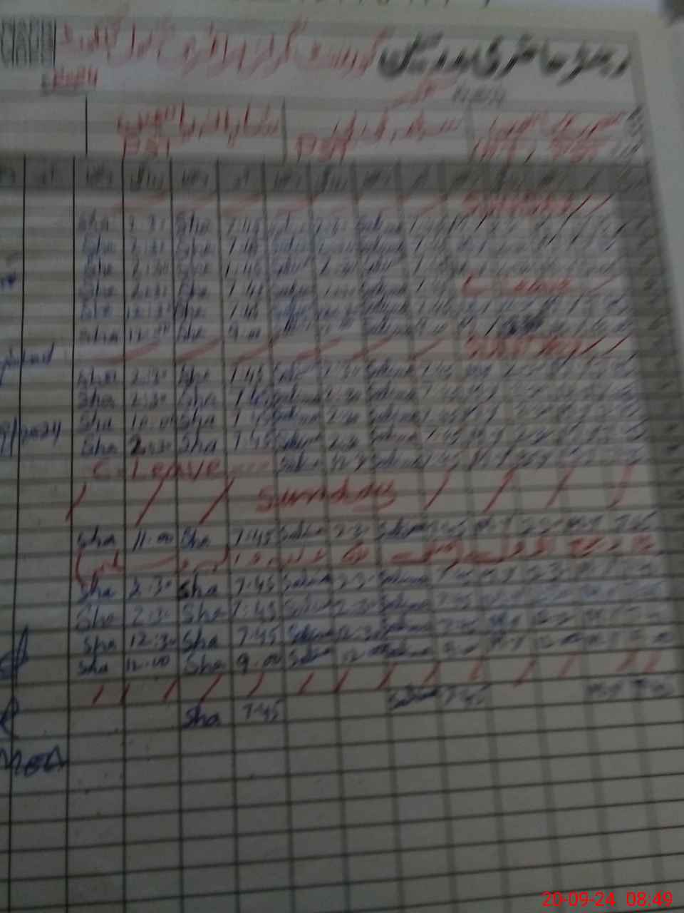 | CNIC | Full Name | Designation | R/C | Absence During Last Calender Month |