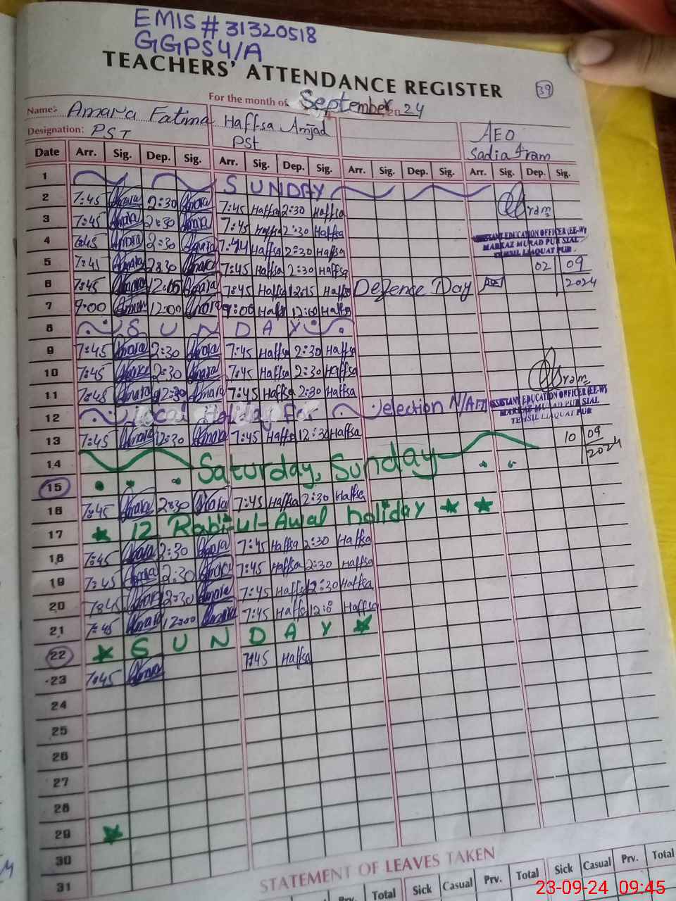 | Name: Am**** Fa**** Designation: (School Headmaster's/Headmistress's) PST Phone/Cell Number: 03**** |