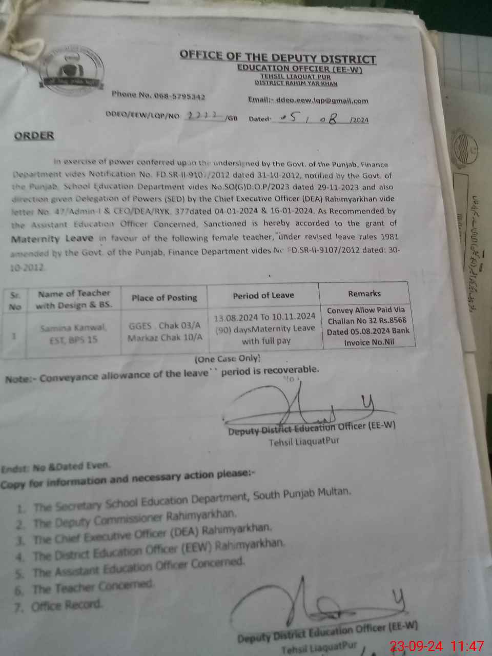 | Name: SH**** AK**** Designation: (School Headmaster's/Headmistress's) S.S.T.(G) Phone/Cell Number: 03**** |
