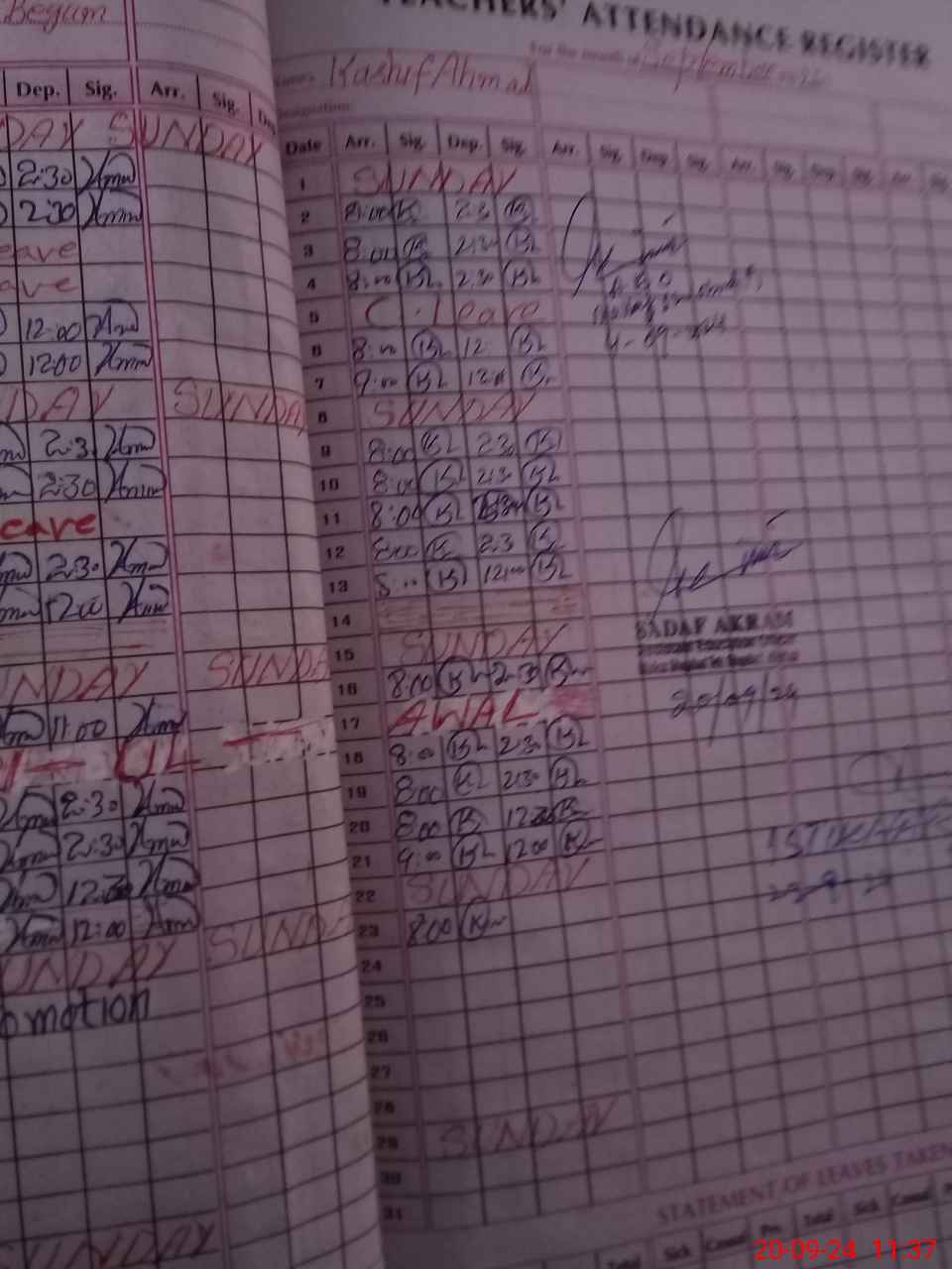 | Name: NA**** BA**** Designation: (School Headmaster's/Headmistress's) PST Phone/Cell Number: 03**** |