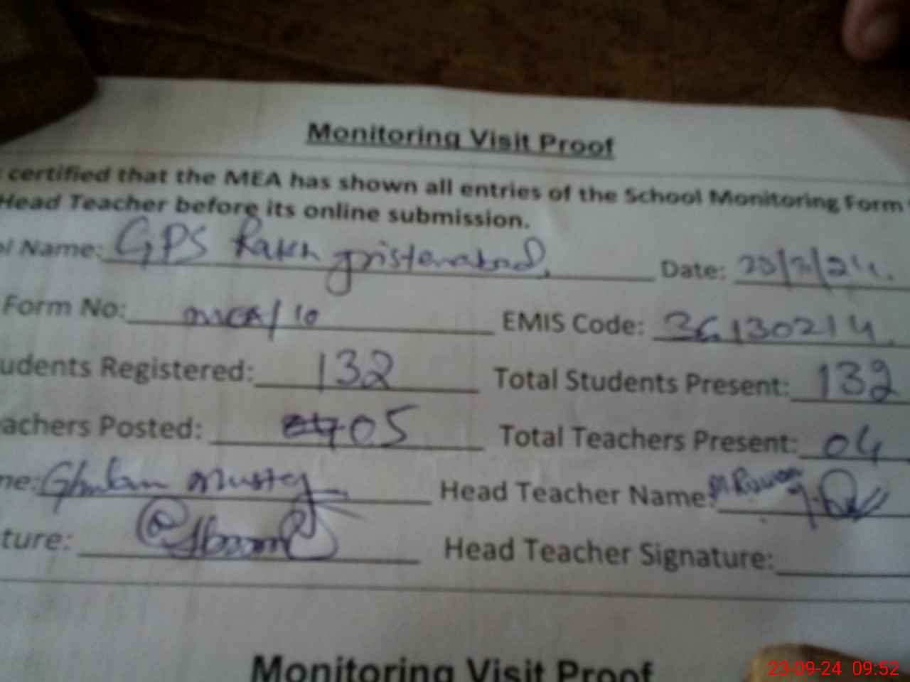 | EMIS Code: 36130214 | Name of School: GPS RAKH GRISTAN ABAD MAKHDUM RASHEED MULTAN | |||