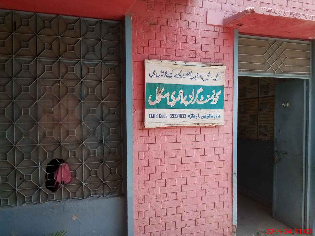 | EMIS Code: 39321033 | Name of School: GGPS QADIR COLONY | |||