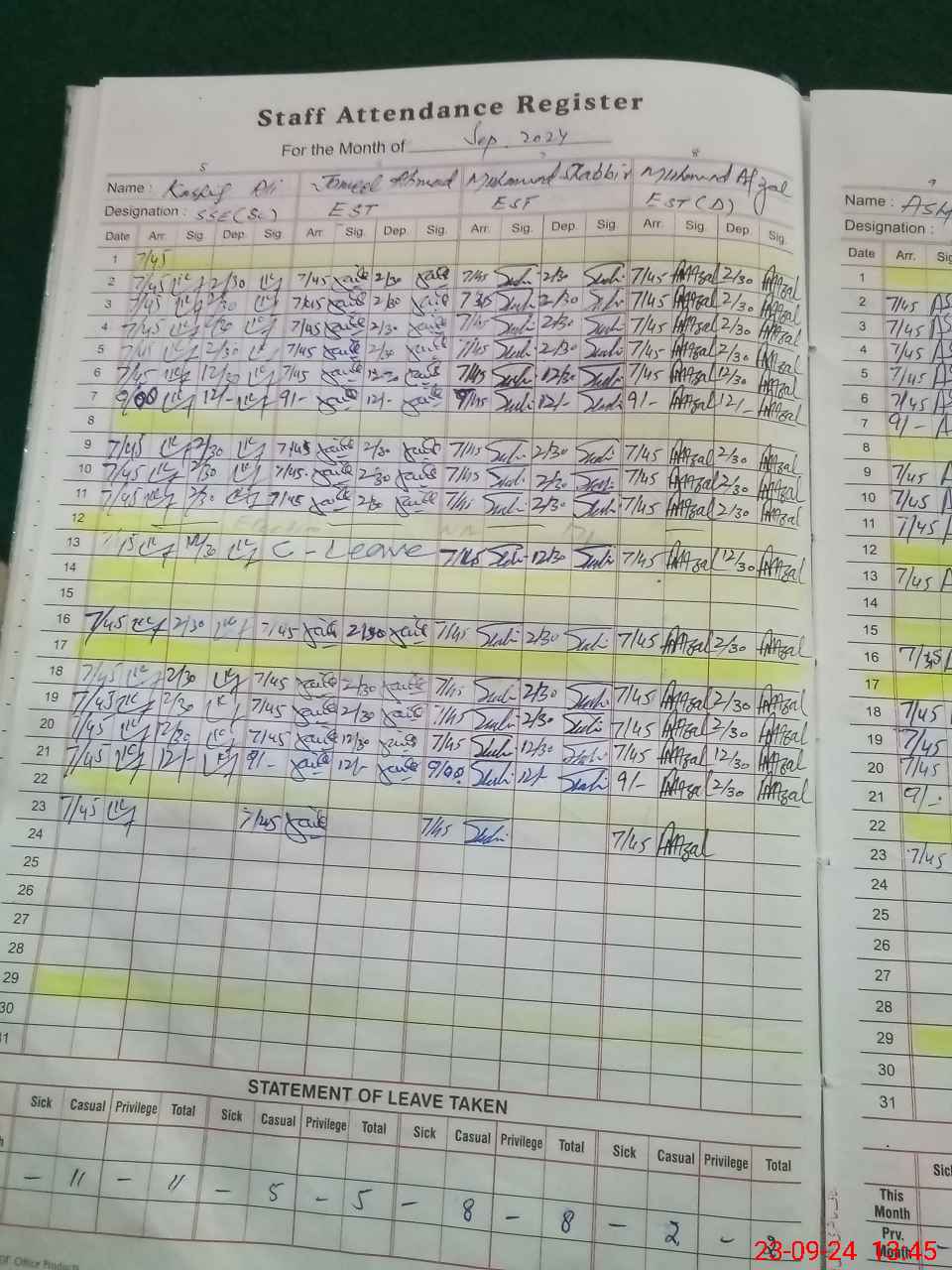 | 31**** | Ra**** Mu**** | CLERK | Regular | 0 | 0 | 0 | 0 | 0 | 0 | 0 | 0 | 0 | Casual |