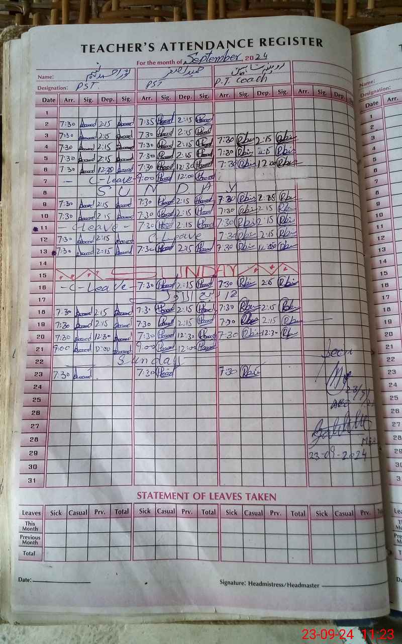 | Attendance Register | Head Teacher | MEA with School | Visit Proof |