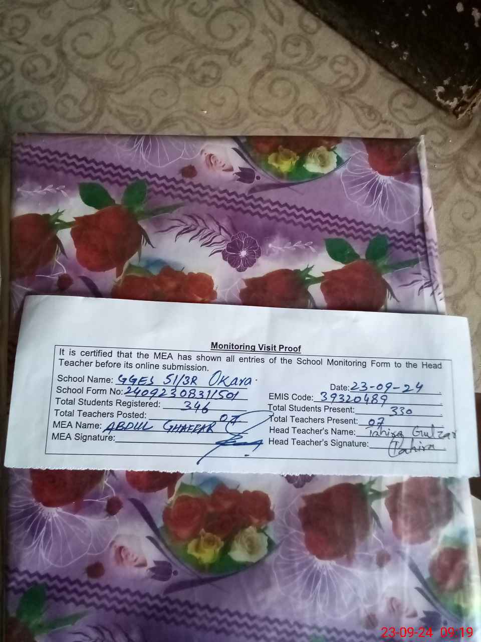 | Attendance Register | Head Teacher | MEA with School | Visit Proof |