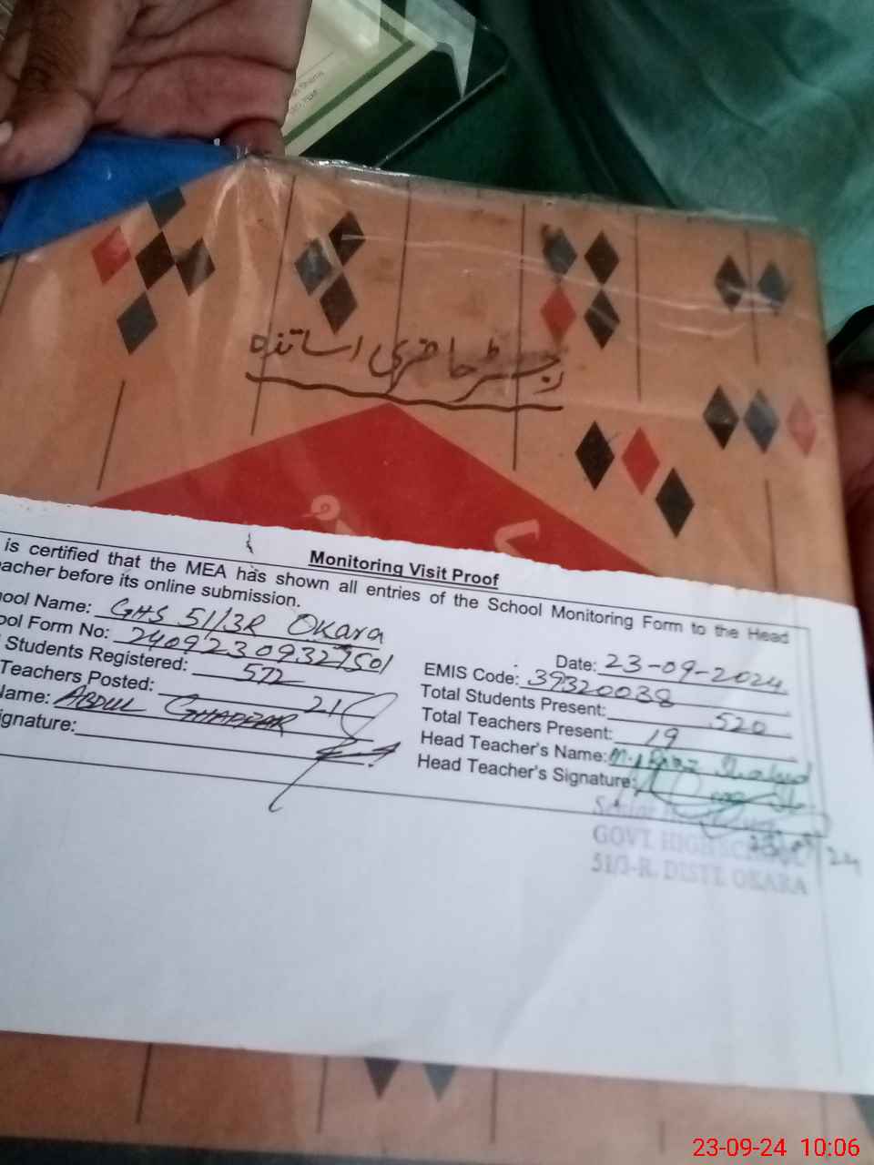 | EMIS Code: 39320038 | Name of School: GHS 51/3-R OKARA | |||