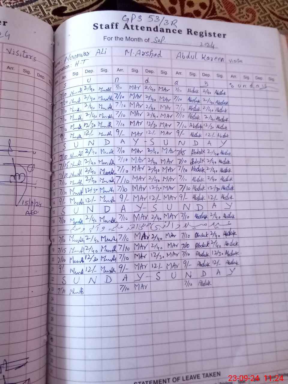 | Leave | Duty | Absent | Maternity | Medical | Ex- Pak |