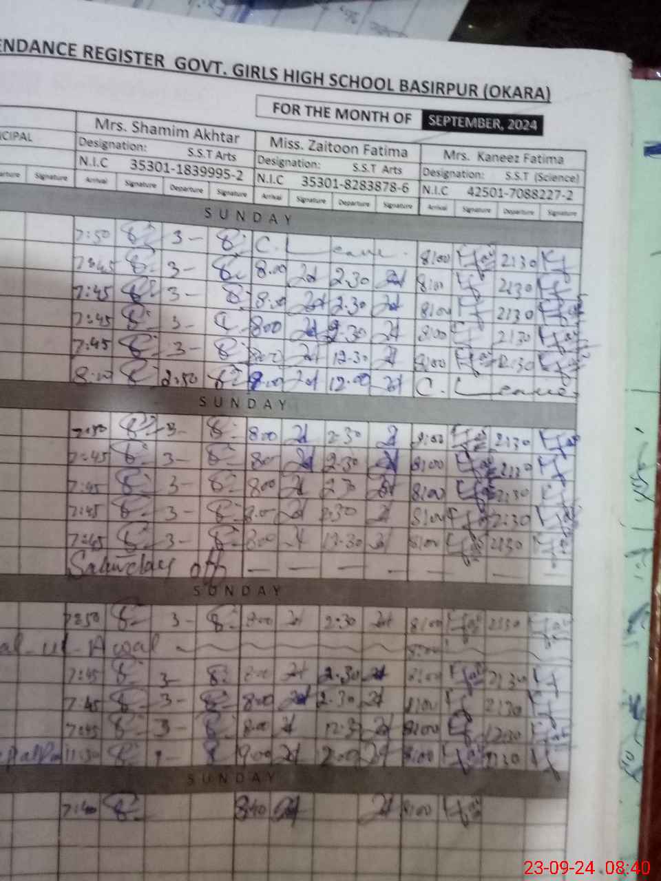 | CNIC | Full Name | Designation | R/C | Absence during last cal. month |