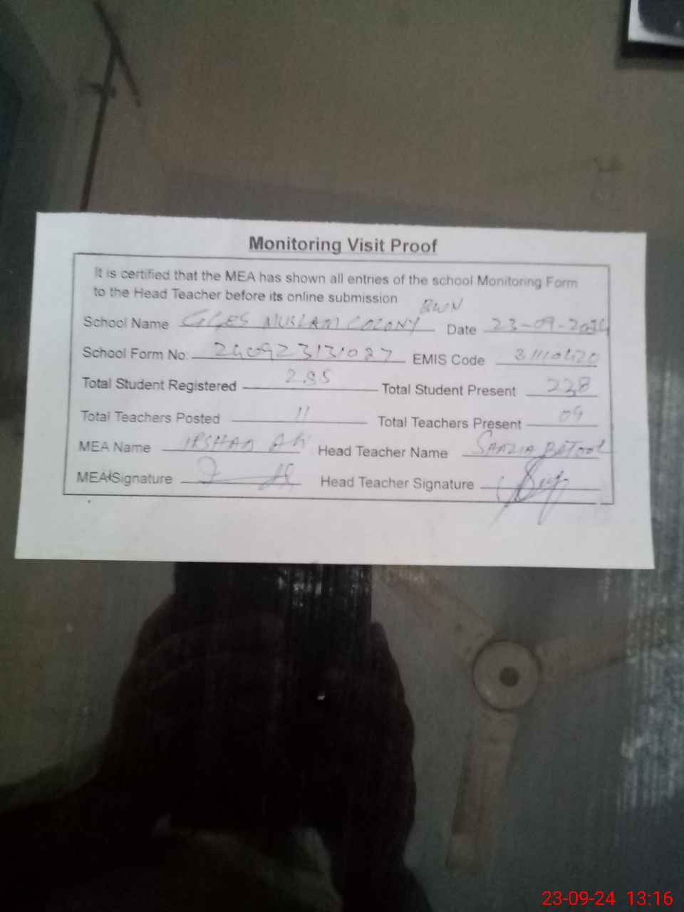 | EMIS Code: 31110420 | Name of School: GGES MUSLIM COLONY | |||