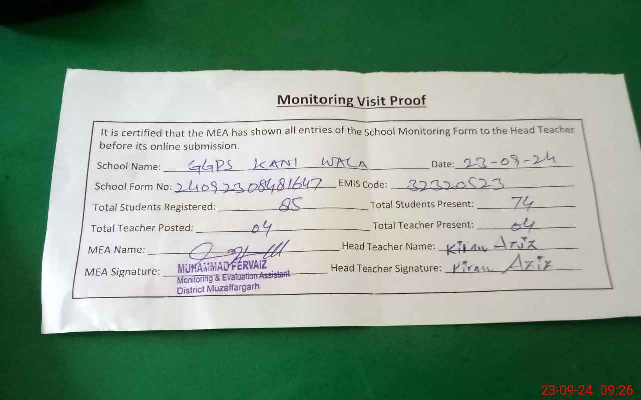 | EMIS Code: 32320523 | Name of School: GGPS KANI WALA | |||