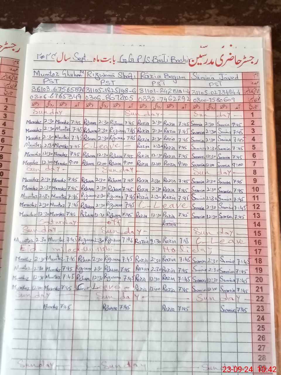 | Name: Mu**** Gh**** M Designation: (School Headmaster's/Headmistress's) P S T Phone/Cell Number: 03**** |