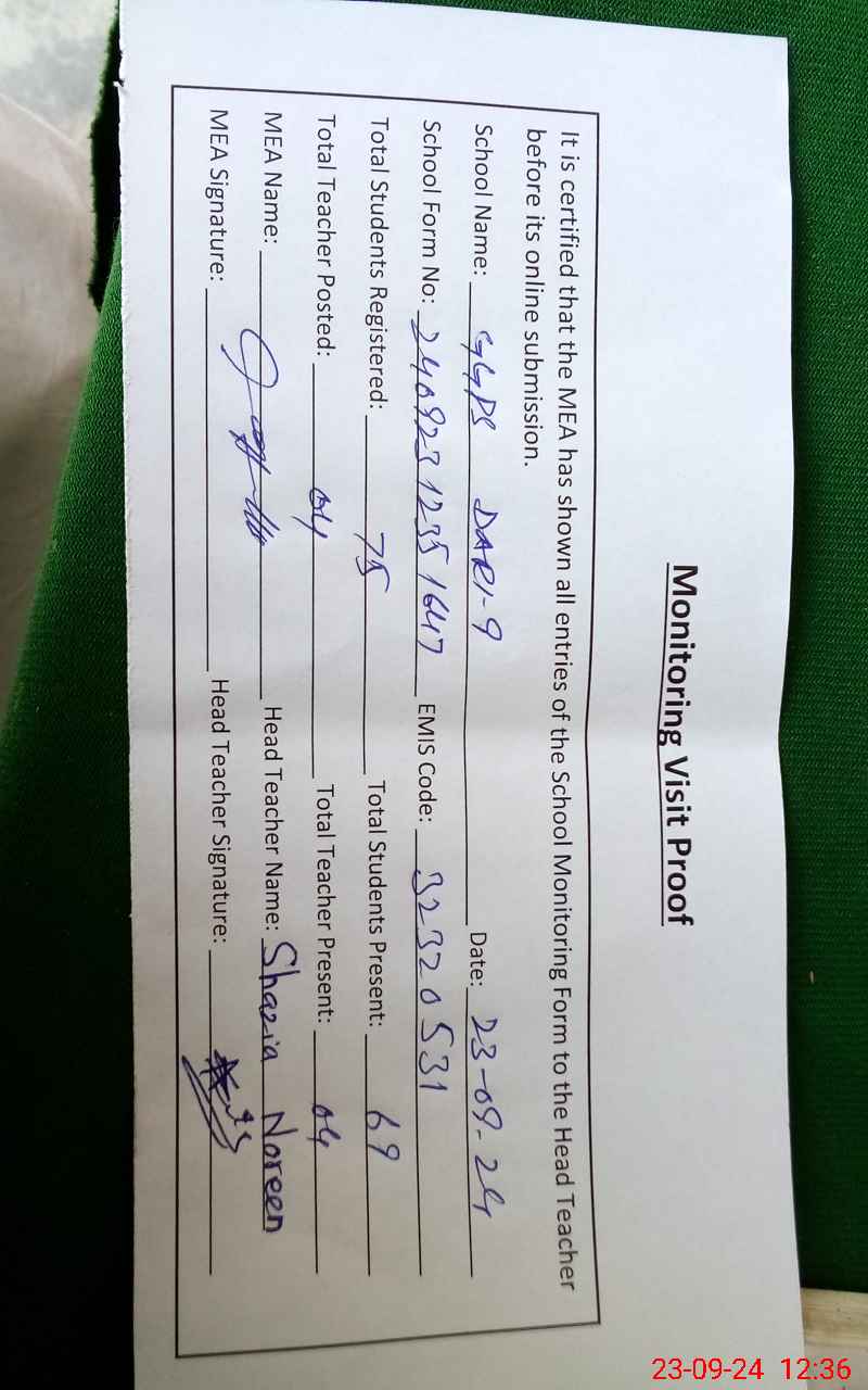 | EMIS Code: 32320531 | Name of School: GGPS DARI NO. 9 | |||