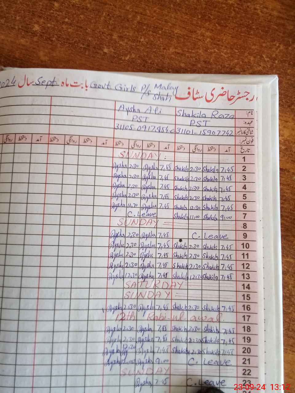 | Name: Ay**** Al**** Designation: (School Headmaster's/Headmistress's) PST Phone/Cell Number: 03**** |
