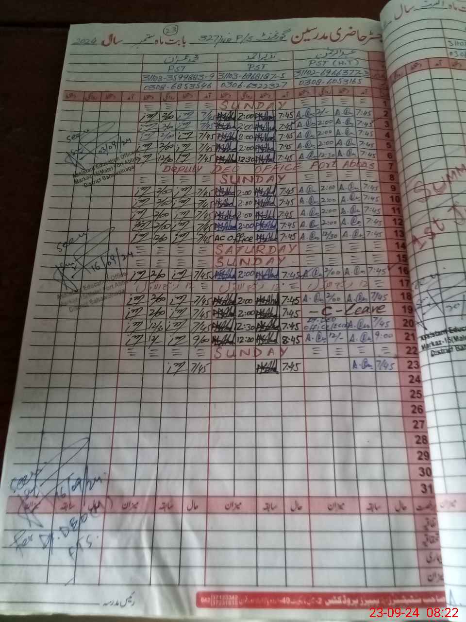 | Name: Ab**** Re**** Designation: (School Headmaster's/Headmistress's) PST Phone/Cell Number: 03**** |