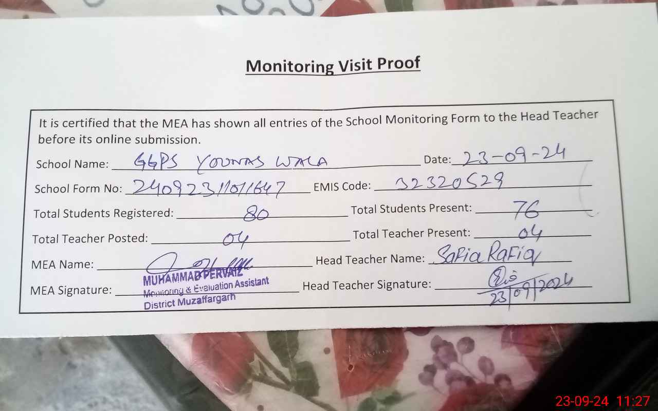 | EMIS Code: 32320529 | Name of School: GGPS YOUNAS WALA | |||