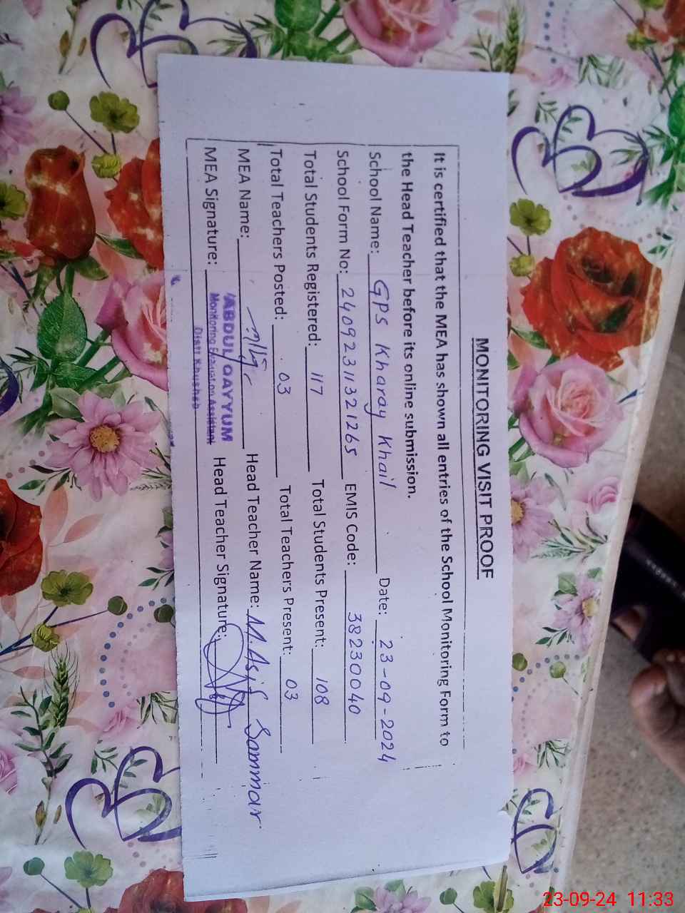| EMIS Code: 38230040 | Name of School: GPS KHARAY KHAIL | |||