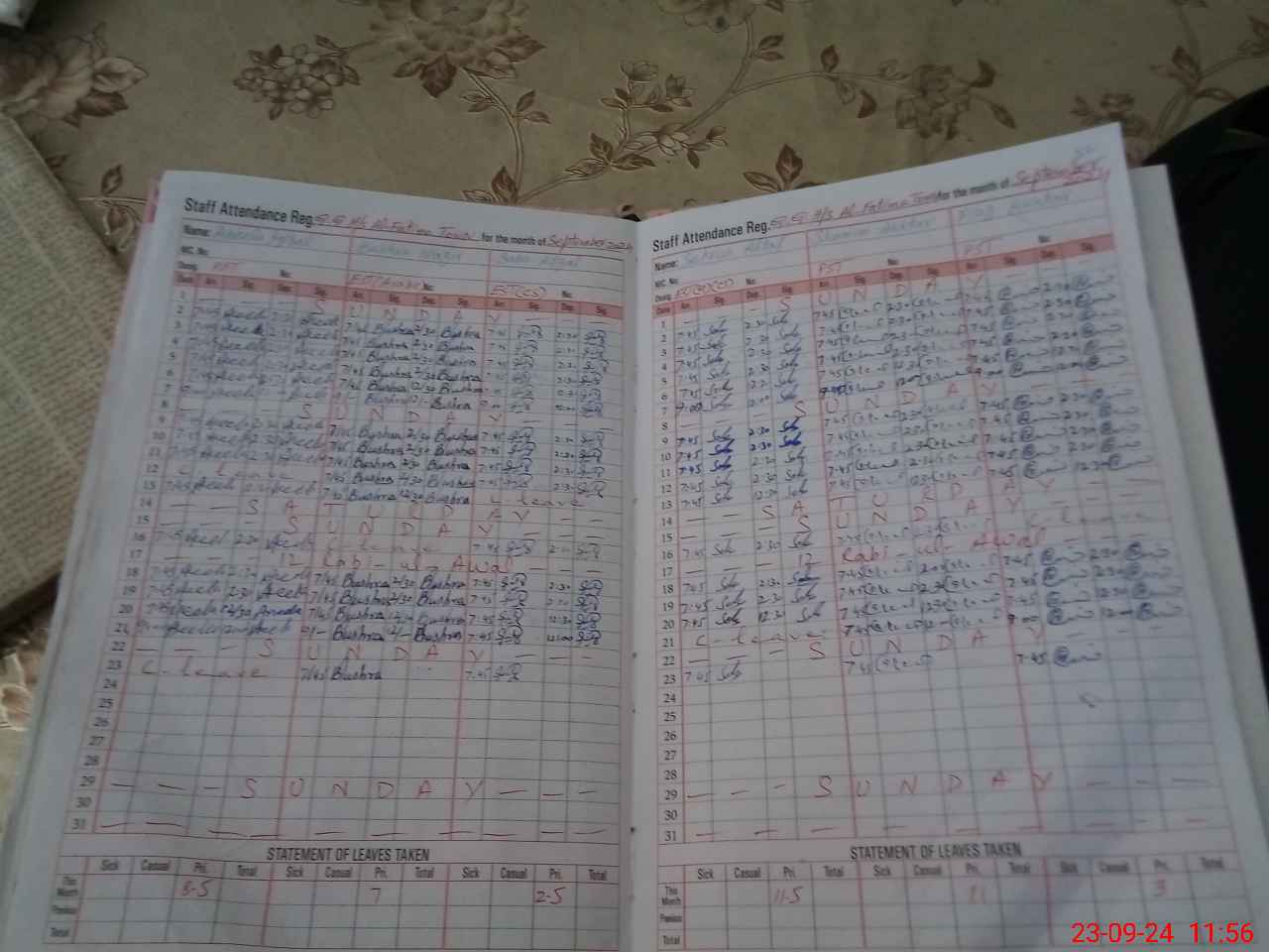 | CNIC | Full Name | Designation | R/C | Absence During Last Calender Month |