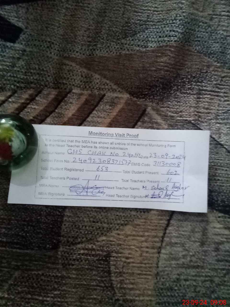 | EMIS Code: 31130008 | Name of School: GHS CHAK 240/HL | |||