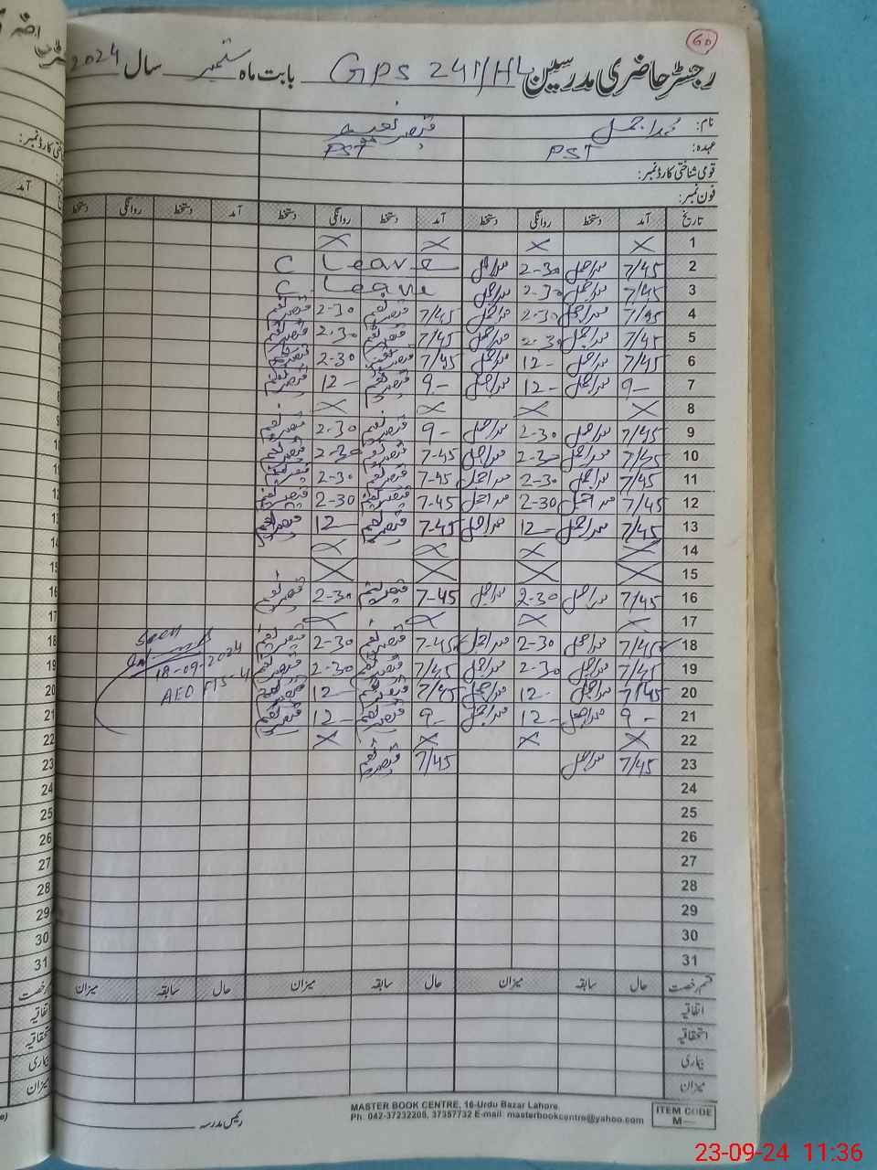 | Name: MU**** AJ**** Designation: (School Headmaster's/Headmistress's) PST Phone/Cell Number: 03**** |