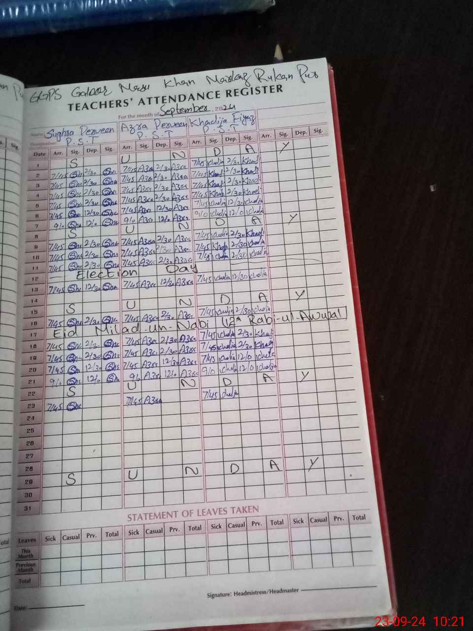 | Leave | Duty | Absent | Maternity | Medical | Ex- Pak |