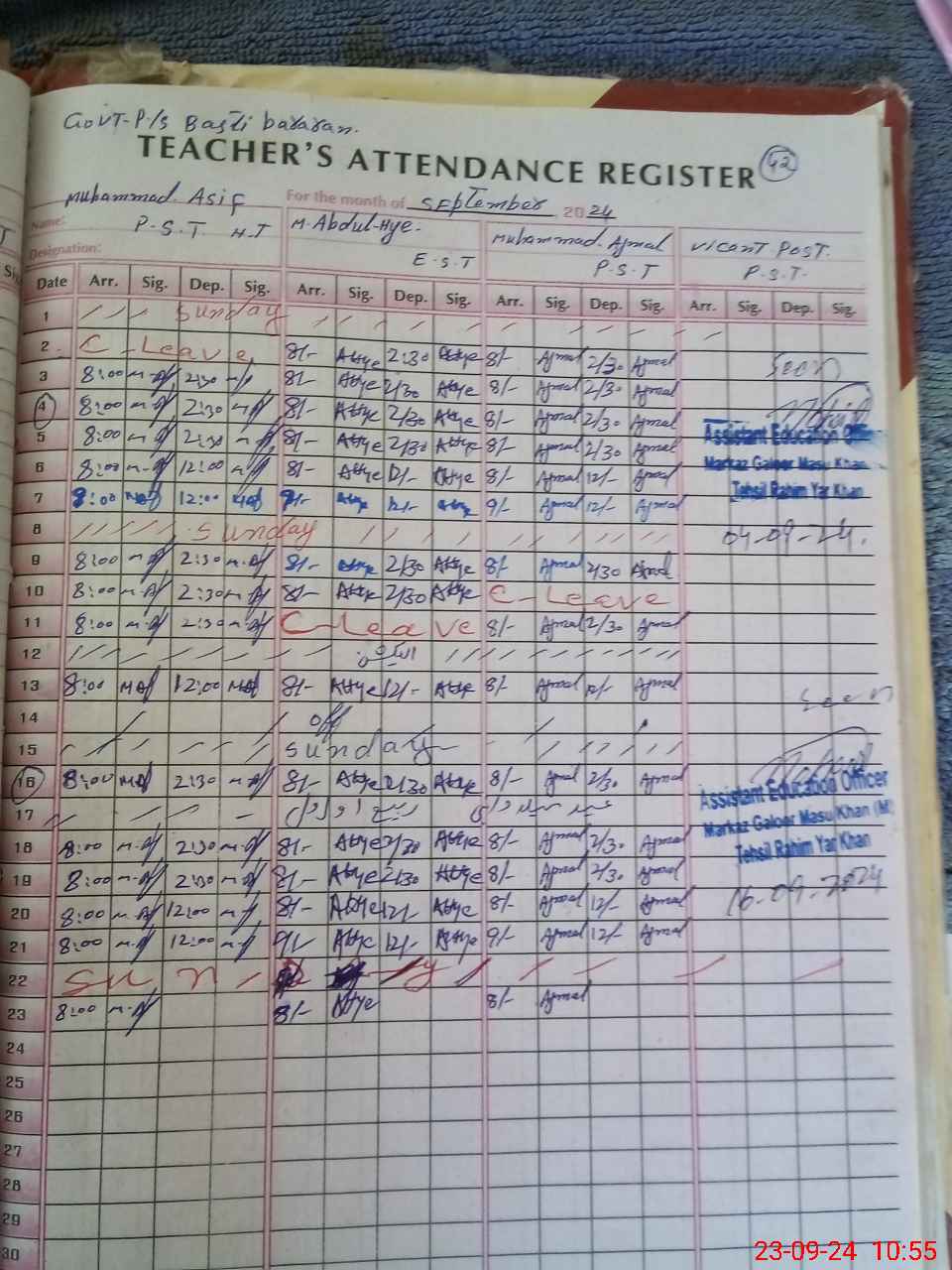 | Name: Mu**** As**** Designation: (School Headmaster's/Headmistress's) P S T Phone/Cell Number: 03**** |