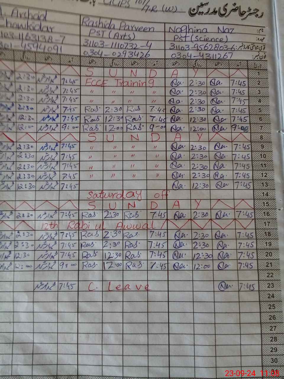 | 31**** | Ra**** Pa**** | PST | Regular | 0 | 0 | 0 | 0 | 0 | 0 | 0 | 0 | 0 | Casual |
