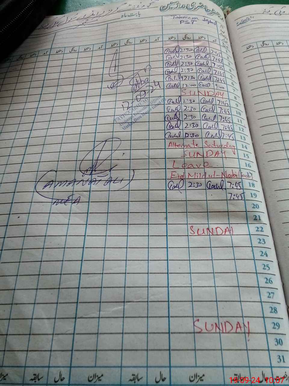 | CNIC | Full Name | Designation | R/C | Absence During Last Calender Month |