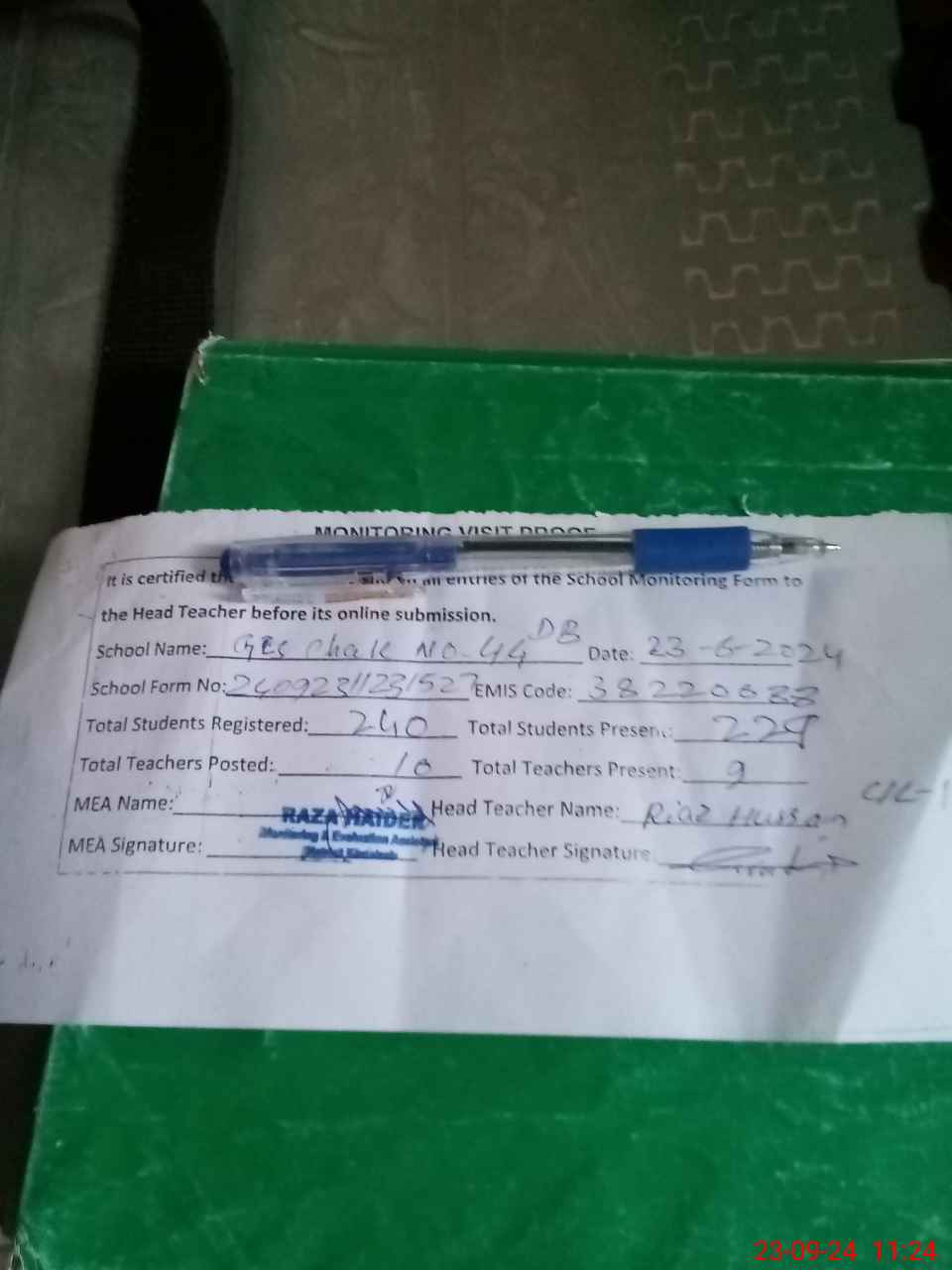 | EMIS Code: 38220088 | Name of School: GES CHAK NO. 44/DB | |||