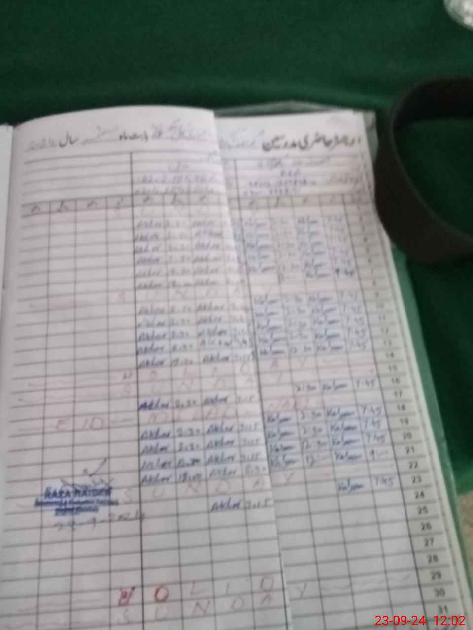 | CNIC | Full Name | Designation | R/C | Absence During Last Calender Month |