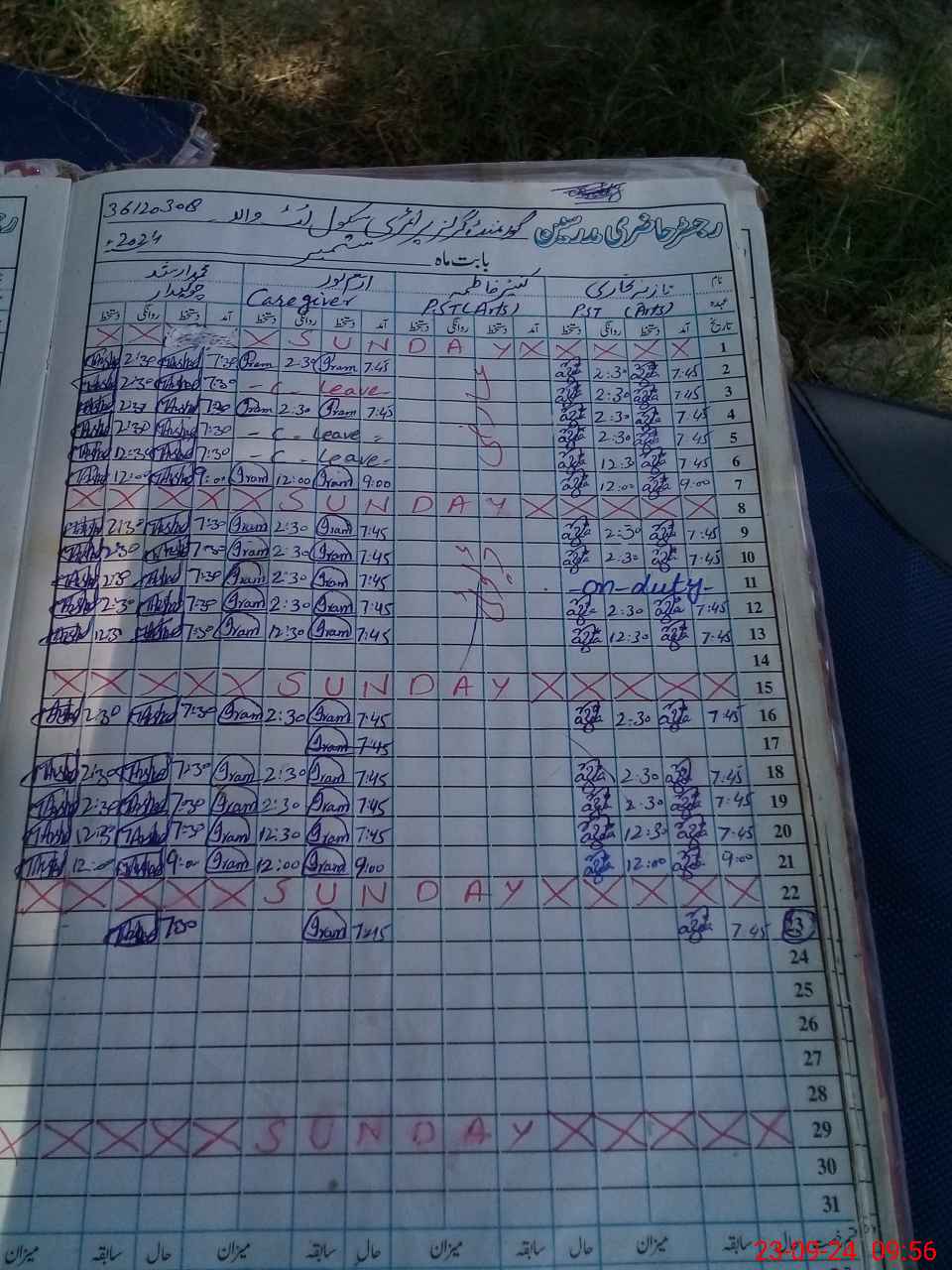| Leave | Duty | Absent | Maternity | Medical | Ex- Pak |