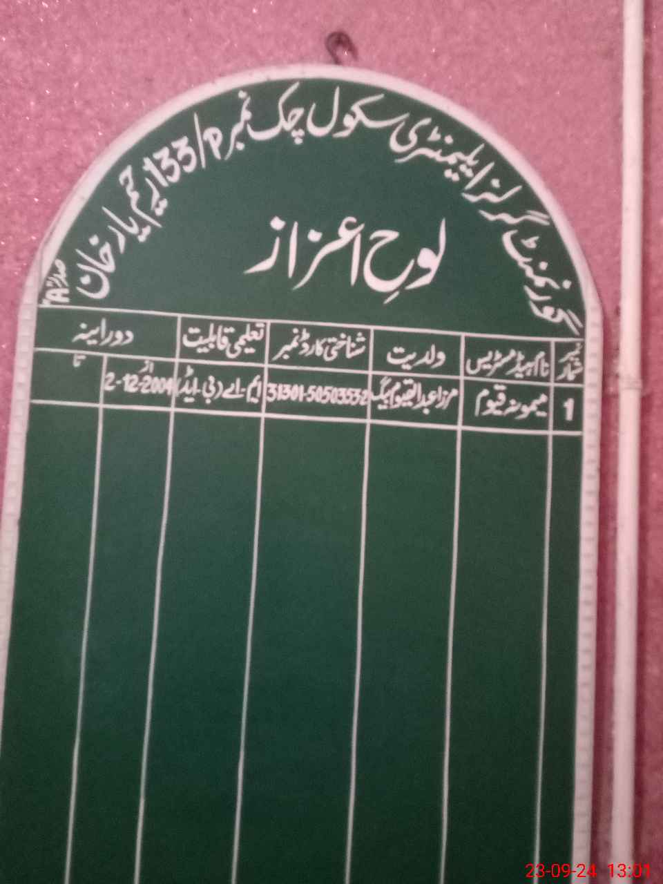 | District: RAHIMYAR KHAN | Tehsil: RAHIMYAR KHAN | Markaz: CHAMAN-FEMALE | Level: Middle | |