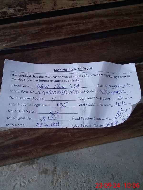 | EMIS Code: 31320032 | Name of School: GGHS CHAK NO. 45/A | |||