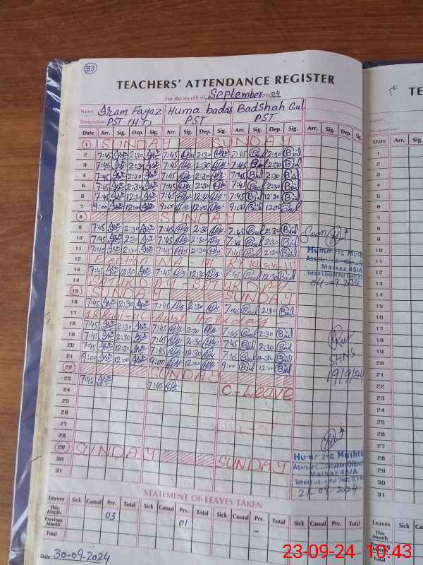 | Name: ER**** FA**** Designation: (School Headmaster's/Headmistress's) PST Phone/Cell Number: 03**** |