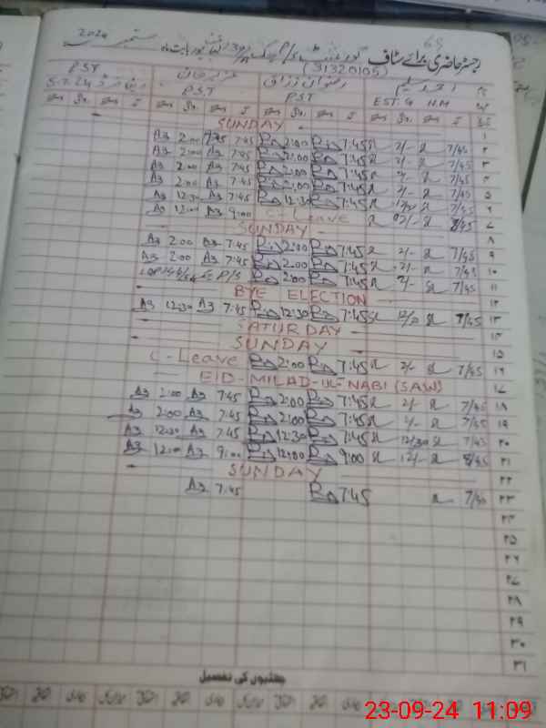 | CNIC | Full Name | Designation | R/C | Absence During Last Calender Month |