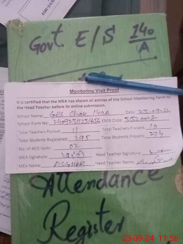 | EMIS Code: 31320048 | Name of School: GES CHAK NO.140-A | |||