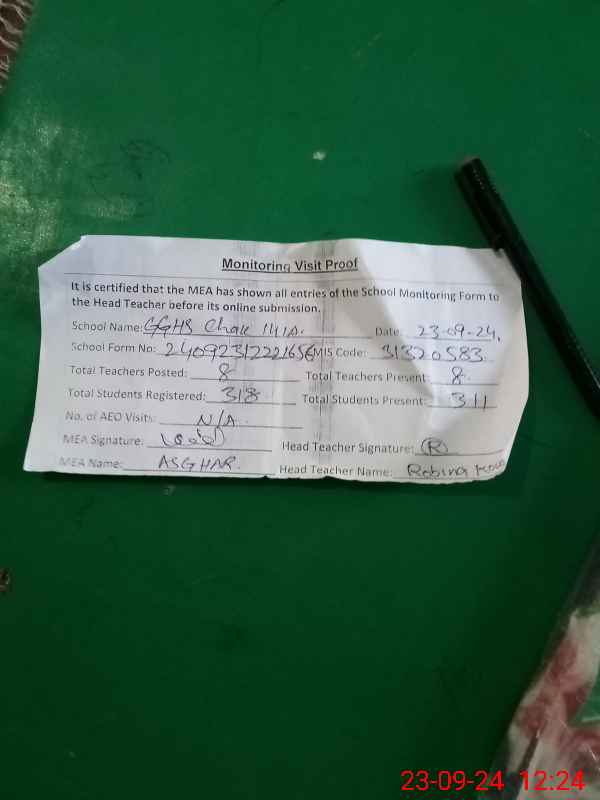 | Attendance Register | Head Teacher | MEA with School | Visit Proof |