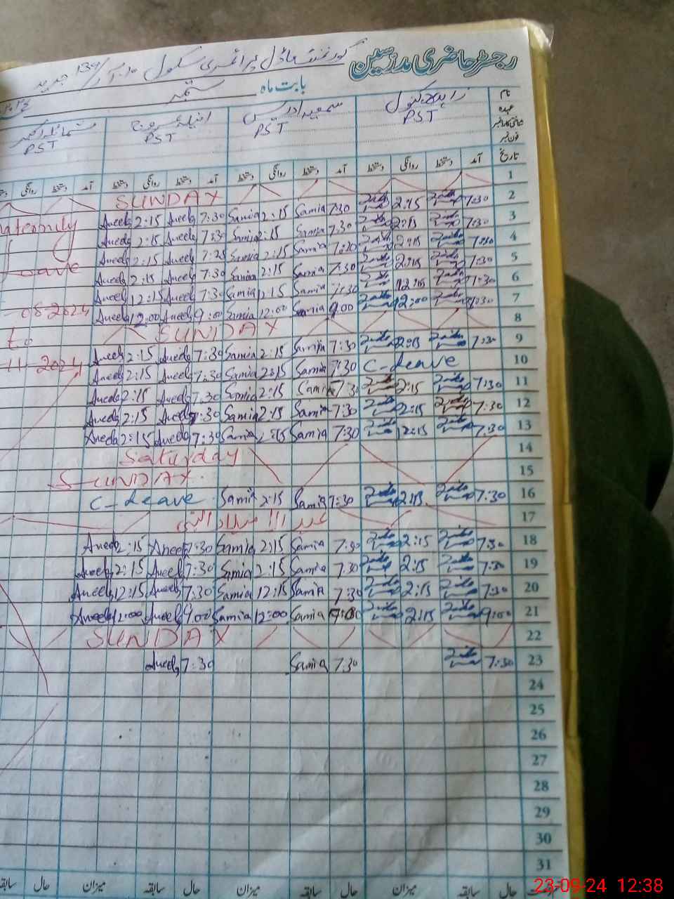 | Leave | Duty | Absent | Maternity | Medical | Ex- Pak |